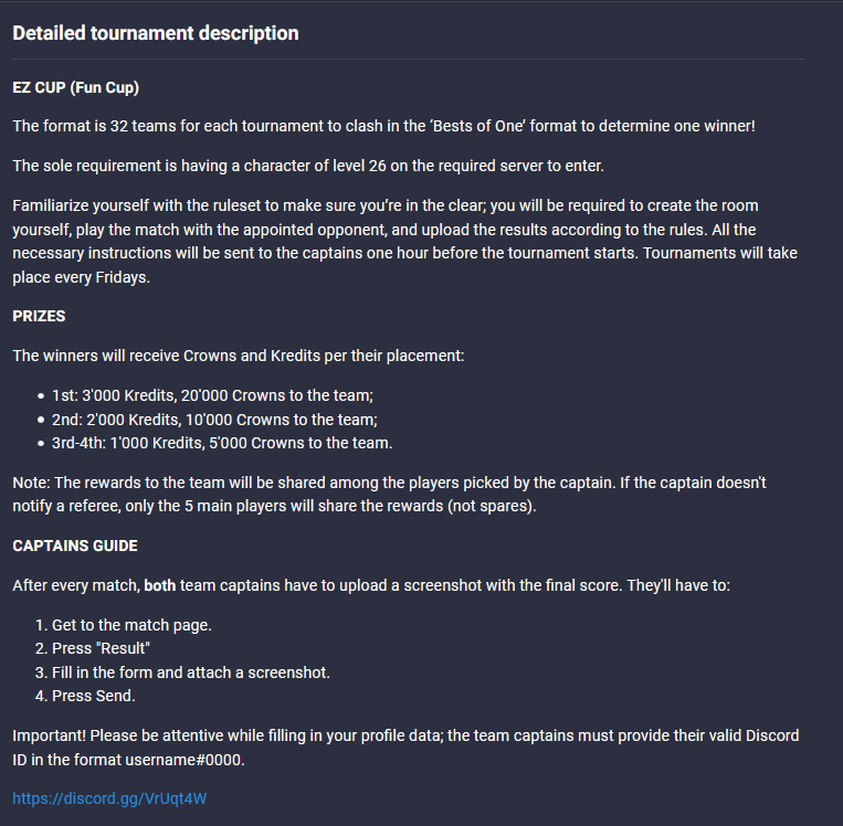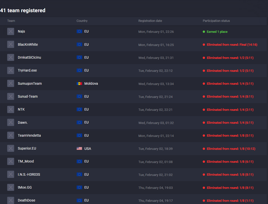 2. Your team must be present in the tournament bracket and in the list of participants.