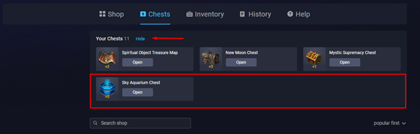 - Check that you are in the correct game shop that the chest was obtained from (for example: Skyforge, or Warface).