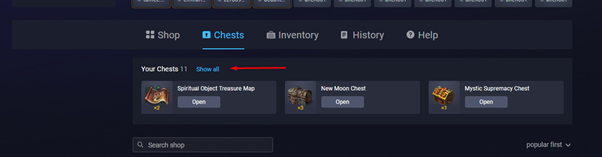 - If you have multiple chests already stored in “Your Chests”, you’ll need to expand this the section by clicking “Show All”: